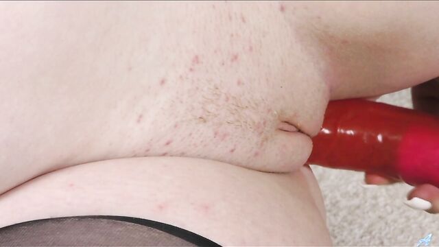 Alluring redhead Bella Hunter shoves a toy in her wet shaved pussy
