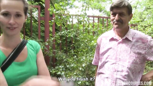 Description: We’ve never seen this before. You’ll go berserk. My smart wifey spotted an elderly couple by a supermarket. The guy is retired and his nice wife will be as well in no time. They had set off to hunt some discounts, as all proper wrinklies do. How about a nice contribution to top up your pension? Missus seems to have her bra stuffed to the brim. She’s shy as if she never had sex before. But the old boy’s eyes are sparkling like Mr. Scrooge’s. One pension for a blowjob and two pensions for a fucking spree in the bush. I’ll bang your old lady and you can fuck a nice juicy cunt in exchange. Holy shit! Your old lady has a bear in between her legs! I’ll need a machete to get through this jungle. And a boat because she is dripping like crazy. The old guy went so mad about my nice young wife that he didn’t even come. But I came all over his housewife. It was fucking hardcore! And all you need to do this is money in the Czech Republic! You’ll love it!