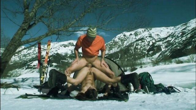 Description: Claudia is camping in the snowy mountains when two weary travellers stumble across her. The trio decide to strip off and keep warm with some spit roast action and some sweaty fucking. While she bounces on a hard rod the other man cums all over her hot body leaving her camouflage with the snow! The pair continue to hump and she takes it up the butt before being given a sticky pussy and ass hole!