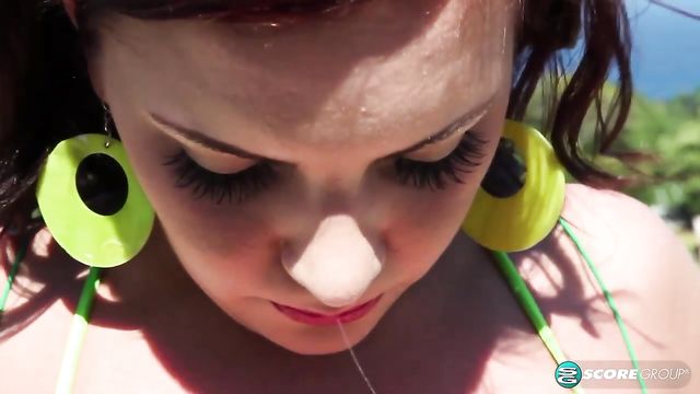 Description:A beautiful girl--mostly naked--on the terrace of a hillside house yards away from a pristine beach on a tropical island. She is rubbing her pink pussy with her delicate fingers as the sea breeze blows through her brown hair.