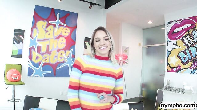 Lusty blonde teen Khloe Kapri rides no a pretty huge boner