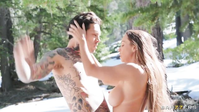 Description: Two couples get together for a week-end in the mountain. What was supposed to be a heart warming reunion turns into a sex-driven escapade. In episode one, we follow the stunning and ever horny Abigail Mac. She shocks her husband Charles Dera when she reveals that Luna Star, the long time friend they're going to meet up at the cabin, taught her how to fuck back in her college years. Tension rises as the two couples indulge in seasonal activities. While they recharge in the jacuzzi, Abigail and Luna sneakily tease each other. However, Abigail truly succumbs to her desire when Small Hands, Luna's husband, takes her for a hike in the woods. After as snowball fight, the two panting hotties get closer, and naked. It doesn't take too long before Abigail is on her knees, warming up Small's dick with her spit. A tree trunk padded with a winter coat makes a perfect love bed for the lusty woman. There, she spreads her legs wide. Small pounds Abigail's eager pussy with all his might. He knows damn well no one will hear the climaxing lady moan and squeal. Winter can be chilly, winter can be cruel, but in Snowbanging, winter is the steamiest season of them all.