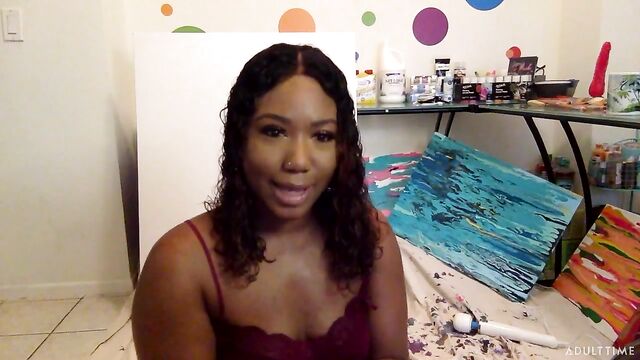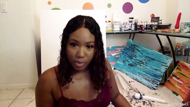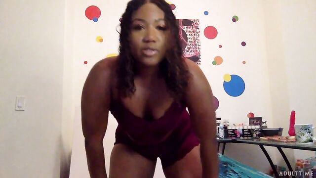 Kinky ebony with natural tits Chanell Heart opens her pussy