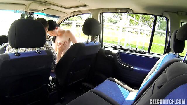 Perverted taxi driver fucked a hot brunette on the backseat