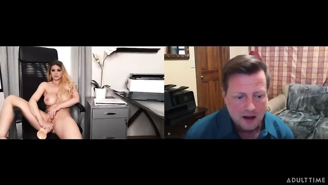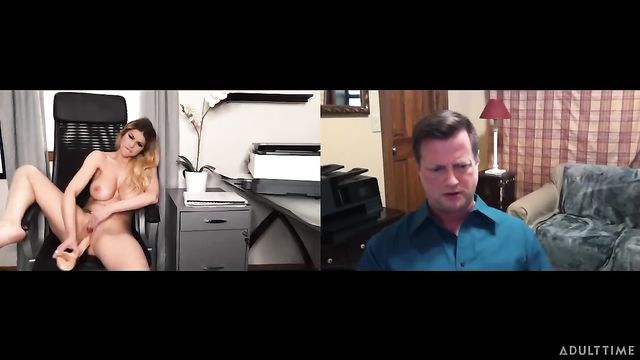 Description: Company manager Eric Masterson begins a video conference call with three of his employees. As Eric leads the meeting, one female employee, Brooklyn Chase, seems bored, and her eyes can be seen wandering distractedly to her cell phone. Slowly, holding her phone in front of her, Brooklyn begins to unbutton her top a little. Soon, she begins to lightly touch her breasts. For now, Eric and the other employees try to ignore it, but when Brooklyn slips her hand down her pants, it becomes clear that she is quietly masturbating to whatever she is looking at on her phone.No longer able to ignore what's happening, Eric stops the meeting and to the amusement of the other employees, confronts Brooklyn. She is mortified and as she stammers apologies, it becomes clear that she thought she had her camera off and was audio-only. Eric gruffly tells the other two employees to get off the call.The others get off the call and Brooklyn is surprised when Eric warmly tells her she's not in any trouble... as long as she lets him watch!