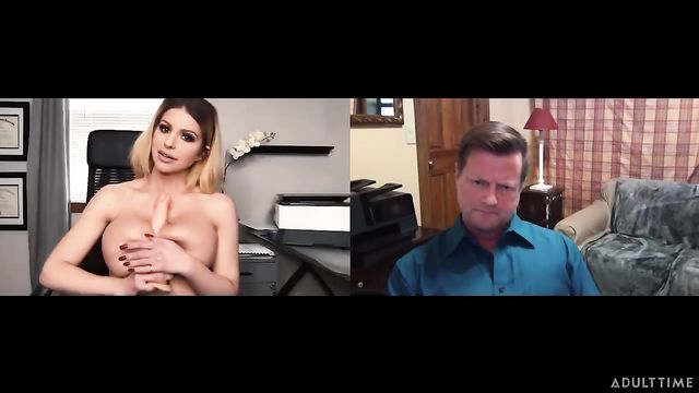 Description:Company manager Eric Masterson begins a video conference call with three of his employees. As Eric leads the meeting, one female employee, Brooklyn Chase, seems bored, and her eyes can be seen wandering distractedly to her cell phone. Slowly, holding her phone in front of her, Brooklyn begins to unbutton her top a little. Soon, she begins to lightly touch her breasts. For now, Eric and the other employees try to ignore it, but when Brooklyn slips her hand down her pants, it becomes clear that she is quietly masturbating to whatever she is looking at on her phone.No longer able to ignore what's happening, Eric stops the meeting and to the amusement of the other employees, confronts Brooklyn. She is mortified and as she stammers apologies, it becomes clear that she thought she had her camera off and was audio-only. Eric gruffly tells the other two employees to get off the call.The others get off the call and Brooklyn is surprised when Eric warmly tells her she's not in any trouble... as long as she lets him watch!