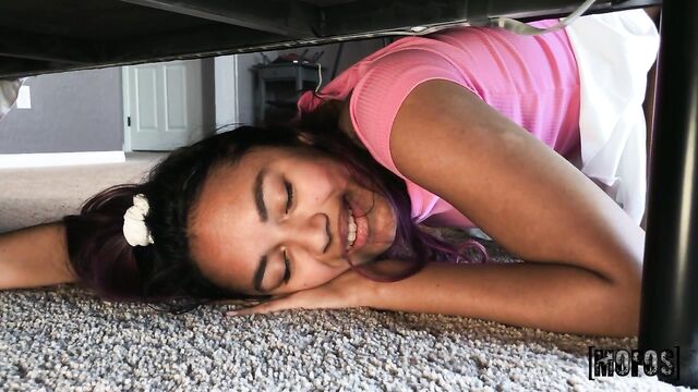 Slutty toned hottie Little Squirtles rides on a long penis in POV