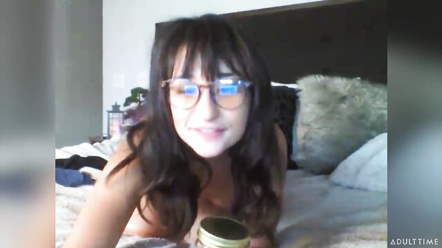 Pretty nerdy chick Isabella Nice feels a hard toy in her little hole