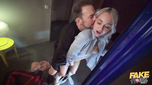 Description:Erik Everhard, pretend preacher, travels to the Fake Hostel with his charge Marilyn Sugar. As they enter their room, the pair sees a locker appear, smoke billowing from its doors. Suddenly, the temperature in the room rises, and Erik declares otherworldly energies have entered the room! Boiling hot, Marilyn tears her clothes off, and starts to feel unbearably horny. Stroking Erik's cock and showing off her tits, Marilyn drops to her knees and sucks the preacher's cock. Turned on, Erik picks Marilyn up, and pulling her panties from her big booty, fucks her doggystyle against the locker. Moving to the bed, Marilyn rides Erik's big hard cock until she finishes him off with her hands and mouth!