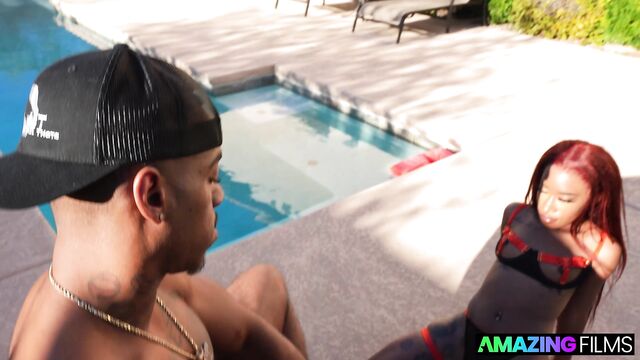 Description: I was just relaxing by the pool and enjoying some downtime when Mini Stallion walked by. She was looking way too sexy, so I invited her over. It didn’t take long at all before she was on her knees, taking all of my thick cock down her throat. We didn’t stop there. I let her feel every inch of my dick in her tight little pussy as well and then glazed her face.