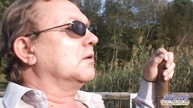 An old guy with a fat penis fucks with a nice brunette teen Brun