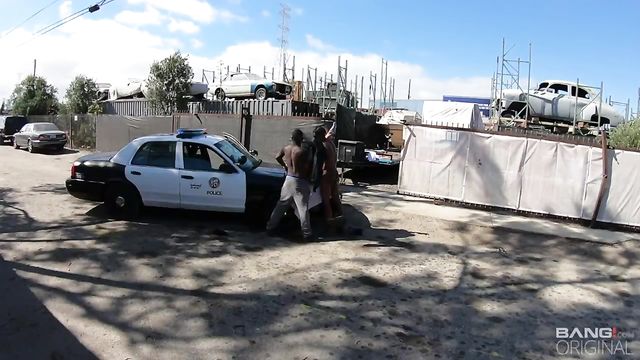 Description: Sheena Ryder busts three offenders in an alley in LA and they are failing to comply with her partner. Sheena makes a bet that if they can beat his ass in a stand up fight she will suck off all of their dicks. The offender throws her partner to the ground and whoops his ass, so he whips out his thick black dick and she slathers it with cum. They take turns fucking her tight cop pussy! Sheena is a bad girl but a good cop that gets triple teamed on top of the cop car!