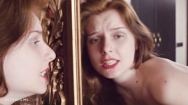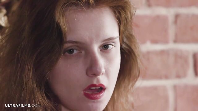 Soloing redhead model with small tits Sienna Kim stimulates her pussy