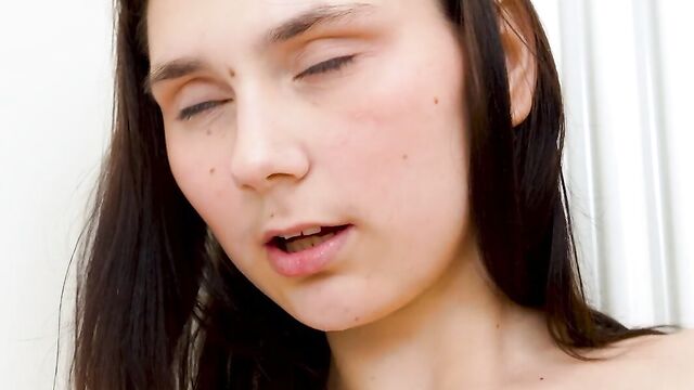 Beautiful brunette Stella Jegante stimulates her hungry shaved pussy