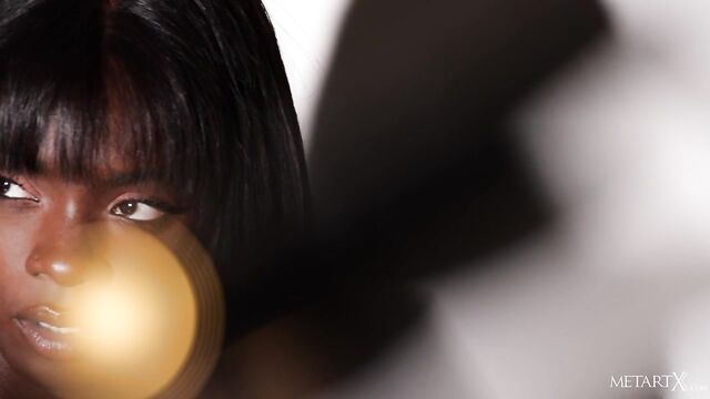 Description: Vivacious Ana Foxx will charm you with her stunning smile as she poses in sexy lingerie, showing off her slender body. The ebony beauty pulls down her white lace bodysuit playfully, making her lovely small breasts jiggle. Scooping up some frosting from a cupcake, she dabs it over her erect nipples, and licks it from her fingers suggestively. She strokes her curly bush and spreads her pussy to reveal the juicy pink interior, gasping with pleasure as she eases two fingers inside. Masturbating feverishly, she moves to her knees with her gorgeous ass up and drives herself to an intense orgasm.
