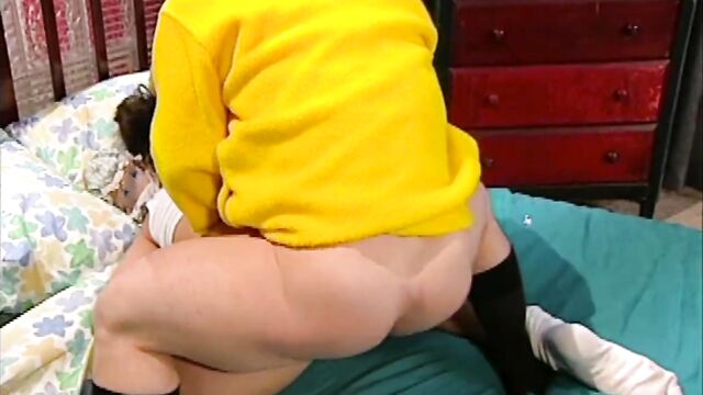 Description: Teen dreams of getting fucked by a midget and gets her mouth filled with his cum.