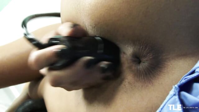 Description: Erotic icon Sandra Shine directs sizzling-hot Hispanic redhead Veronica Leal in this horny fantasy movie. Veronica has a medical fetish and is getting her kink on in a hospital room. Dressed in scrubs and clogs, she plays with the equipment, only to uncover a sexy surprise – a huge black dildo attached to a stethoscope. She inserts the earpieces, then runs her manicured fingers over the veined shaft and sucks on the head.