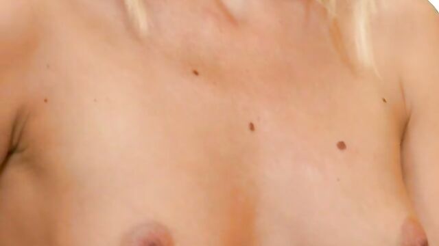 Stunning blonde babe Sophie Moone stimulates her hungry crack