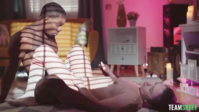 Alluring white babe Kenia Queen fucks with a big black sausage