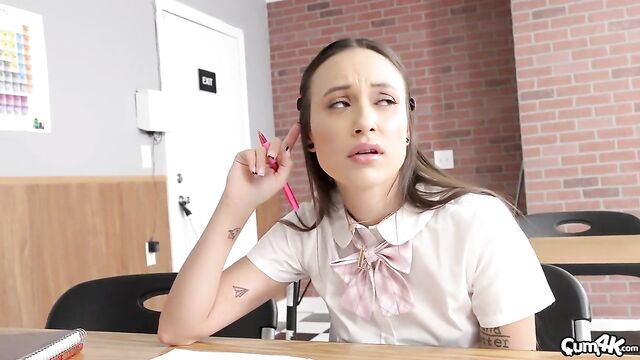 Description: Rebellious school girl gets caught masturbating with a remote controlled vibrator while in detention. She gets taught a lesson in orgasmic insemination therapy.