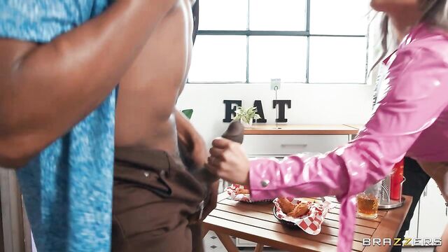Description:Two goofball dudes (Isiah Maxwell and Vince Karter) chat about the state of their awful town’s dating scene in a greasy diner when a beautiful biker babe (Hayley Davies) shows up. Each guy tries to put the moves on her, but the biker babe turns it around on them when she has them each whip out their fat cocks, literally leading them into a raunchy threesome out on her motorcycle. Hayley strokes them enthusiastically while the guys slurp on her clit and asshole, spattering glistening fuck-juice all over the leather seats. When it comes time to dick her down, Hayley accommodates both guys with aplomb as they switch off back and forth between her wet pussy and her hot mouth. The guys splatter Hayley (and her bike) with cum, driving away, leaving both guys in her dust and stuck with the bill.