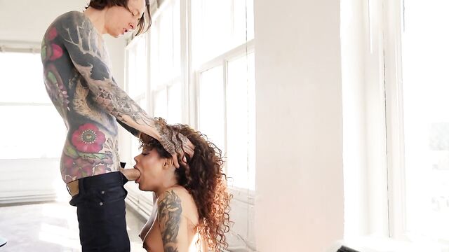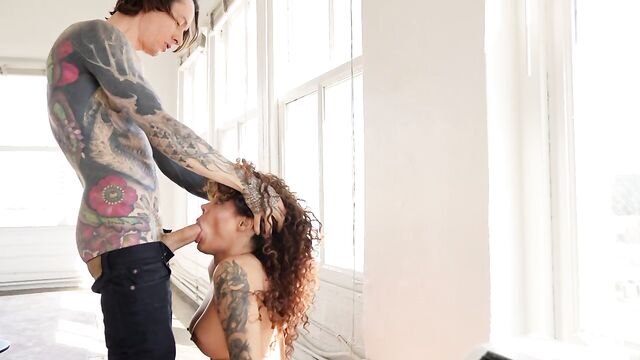 Inked hottie Eva Maxim impaled by massive dick in the cowgirl pose