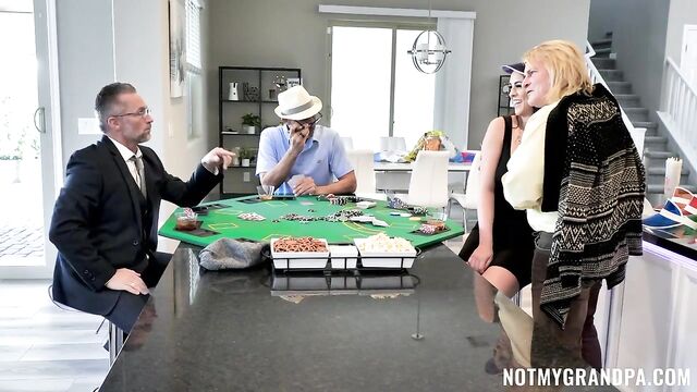 Description:Nicole Sage is helping her step grandpa with poker night - by being the dealer, and helping him cheat and rake in the winnings. When her step grandpa’s friends figure out how he’s been winning all this time, trouble brews...but Nicole saves the day with a dirty threeway.