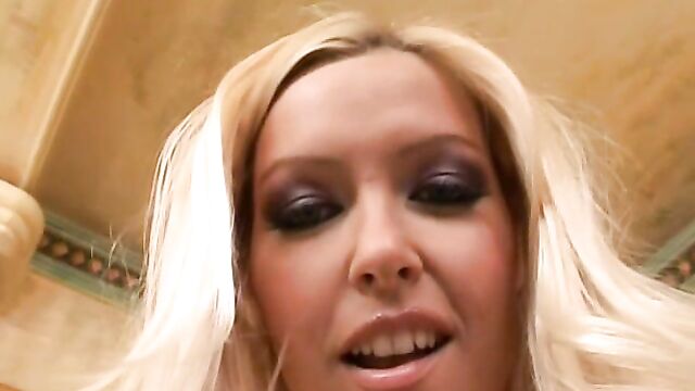 Flexible blonde girlfriend Sophie Moone is enjoying masturbation