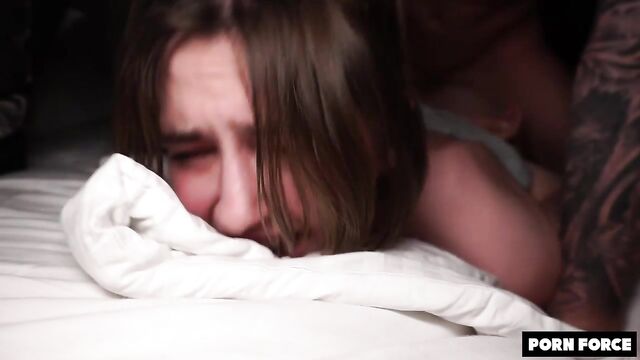 Description:Sexy teen Funky Town is bent over on the bed flashing that juicy ass. The tattooed stud, Martin Spell. spanked her hard making her booty jiggle wildly. "Ahhh yes punish me Daddy!" Funky squealed as he slid balls-deep doggy style. Hammering her cunt from behind until juices squirted everywhere???? He then flipped slutty singer onto back fucking missionary while choking her out. Martin grunted relentlessly while pounding her tight broke pussy. Suddenly Funky hopped up gripping the pole above her! Sh got ruthlessly fucked standing upright. She moaned, eyes rolling back while getting slammed with abandon. Martin finally pulled out and started fingering her clenching cunt. Afterwards, he pushed her head down so she can deepthroat his throbbing cock. He made her gag like crazy. He then glazed her tonsils with huge mouthful of spunk! What a rough fucking for this poor slutty teen!