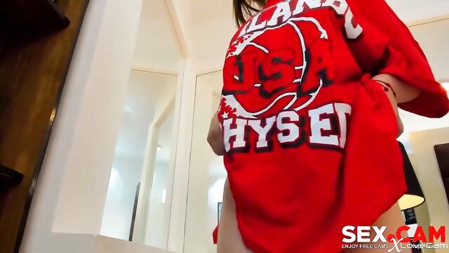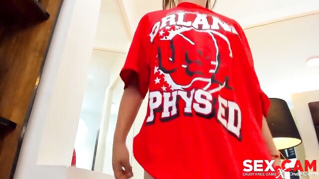 Beautiful angel in red lingerie has a pretty sweet round bottom