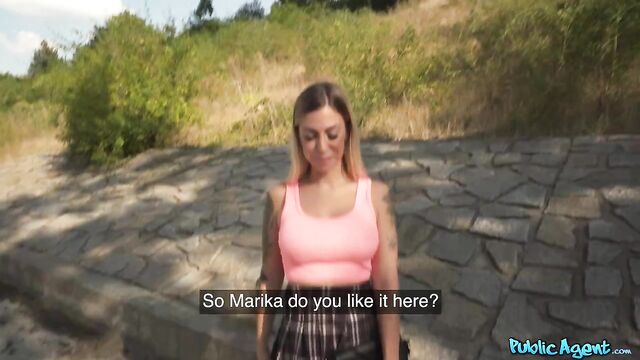 Description: Today I met this sexy tattooed blonde named Marika Milani, who was happy to stop and chat. After handing over some cash, the Italian beauty flashed me her big boobs, and she even let me squeeze them! I gave Marika a few more euros for a blowjob, and then she bounced her tight pussy on my cock in cowgirl before taking a doggystyle pounding. I spanked her curvy ass hard as I fucked her from behind, and then the filthy minx spread her legs and invited me to bang her in missionary until I came on her tongue!