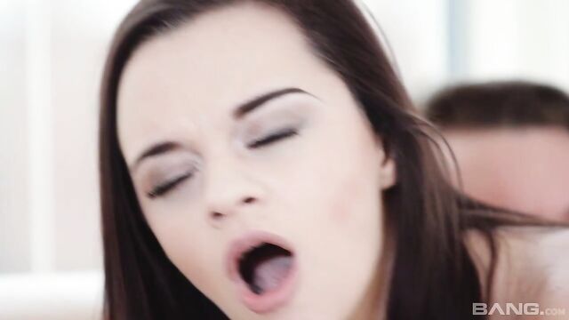 Flexible brunette with good bottom Lea Guerlin fucked on the couch