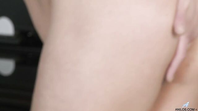 Flexible blonde with round ass Olga Leona demonstrates her shaved pussy