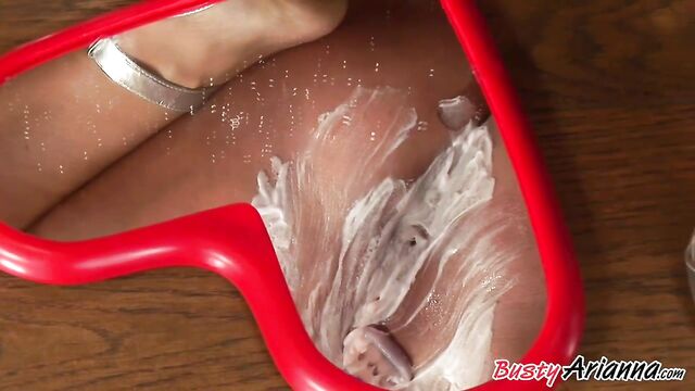 Beautiful chubby brunette Arianna Sinn plays with her wet shaved pussy