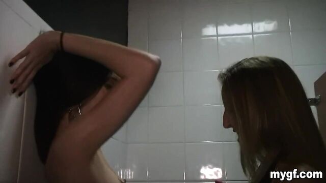 Sweetheart Hope gives a sweet public cunnilingus in the toilet