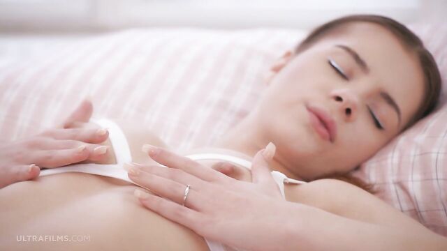 Flexible girlfriend Miami is trying to stretch her shaved pussy