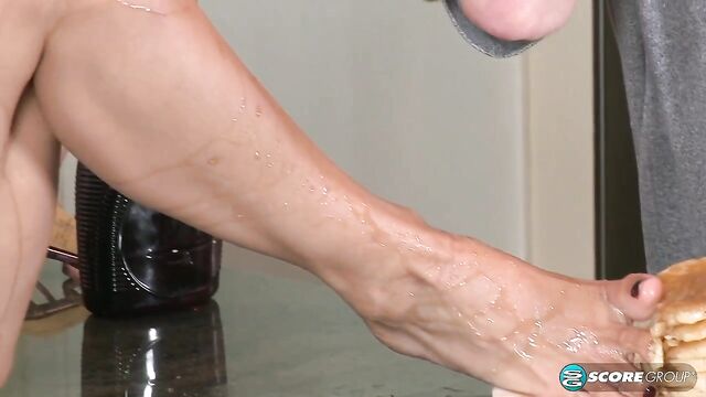 Description: With her toned legs and sexy demeanor, Natasha could seduce any man. But there is only one man she has in her sights, and that is her son's friend who is visiting from college. She knows that the way to a man's heart is through his stomach so she makes him a huge stack of pancakes and waits for him in her kitchen. But he doesn't have an appetite for anything other than her gams and peds. Watch him pour syrup all over her legs and tight pussy and lick and fuck her right on her kitchen counter. It's pretty obvious that Natasha made him a meal, but in the end he makes a meal out of her.