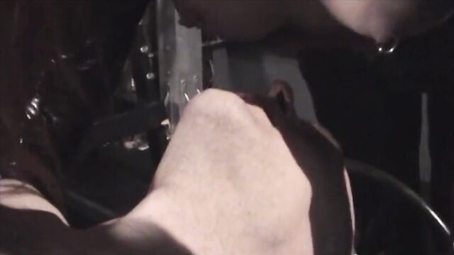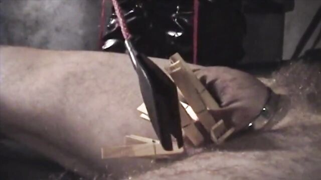 Description: Asian femdom wearing latex spanking and tormenting slave's cock.
