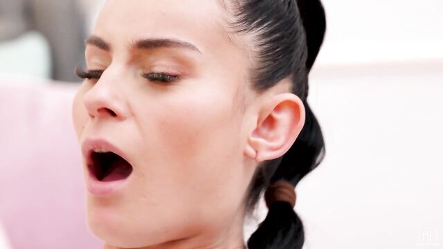 Passionate brunette model with small tits Mindy fucked by a long boner