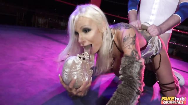 Description: Our newest contestant on Knockouts is The Bard (Ryan Ryder), a prancing fighter who shows the penis is mightier! Squaring off with the Bard is the Pirate Princess Tempest, but the powerful Bard quickly scores the first fall. Using a chair as a weapon, Tempest pins The Bard for the second fall, then wins the match thanks to interference from her former enemy Astrid the Viking Warrior! Angered by his loss, The Bard confronts Astrid, who calms him down with a slutty blowjob. Astrid shows The Bard how to fuck like a viking with a dirty rimjob, a sloppy tit wank, and plenty of hardcore sex!