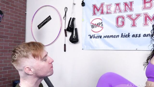 Description: The MeanBitch Gym is a special gym for submissive guys... it's for guys who need a trainer who will be mean and ruthless as they work out. And it's a gym where the trainers provide special motivation exercises involving ass worship and foot worship. Silas Stone goes to the MeanBitch gym to find a trainer and meets Goddess Victoria Voxxx. She's tall and beautiful with a big ass, and she looks at Silas like he's a piece of dirt. She tells him to remove her tennis shoes with his teeth, and when he apologizes for not being able to do it, she tells him 'Don't apologize to me anymore, it makes me sick'. She orders him to smell her sweaty feet and then makes him smell her sweaty socks. He loves her heavenly scent! She makes him lick the bottoms of her feet, and then lays on the weight bench on her stomach... she grabs his face and pulls it into her spandex covered sweaty ass... she uses her legs to scissor the back of his head so he's trapped in her BIG ASS!!! Then it's time for some exercise. She has him sit on the exercise bike and then straddles his lap and grinds on his cock while he tries to pedal. Then she turns around, pulls down her pants, and bends over so her ass is in his face while he pedals the bike. He's getting some good exercise! Then it's time for some situps... she bends over with her ass in his face, and each time he comes up he has to kiss her superior asshole! After some intense ass eating in different positions, she tells him to lift some weights. He lays on the weight bench and each time he does a bench press, she SITS ON HIS FACE!! Then she lays on the floor and each time he does a pushup his face ends up in her BIG ASS. In the end, she jerks him off with her ass in his face! THIS IS OUR HOTTEST GYM SCENE EVER!! VICTORIA IS MEAN AND DEGRADING, AND THE ASS WORSHIP, FOOT WORSHIP, AND FACESITTING IS INCREDIBLE!!