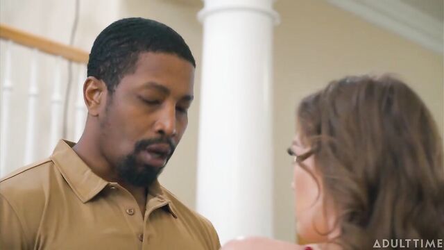 Description:Katie Kush is in her living room, dressed in sexy lingerie. Her husband should be home from work soon... and she's going to give him a SPECIAL surprise for their anniversary. She positions herself in view of the front door so her husband will be able to see her the moment he comes in. But while she's waiting, she gets so horny that she decides to masturbate, thinking to herself that her husband won't mind if she gets a little head start without him.Eventually, while she's still touching herself, she hears a knock at the front door and rolls her eyes in playful exasperation, saying to herself that her husband is ALWAYS forgetting his key. She calls out 'Come in, it's open!' However, the person who opens the door and comes in is not her husband: it's a delivery man, Isiah Maxwell, carrying a package. But Isiah quickly drops the package in shock when he sees what Katie is doing! They both stammer apologies to each other, including Katie sheepishly explaining that she thought he was her husband.Katie then notices a text message arriving on her phone, and takes a quick look at it. Katie looks upset as she says that it's from her husband: he says he's going to be home late because he decided to hang out with his buddies. Katie angrily says that means her husband FORGOT about their anniversary. Isiah awkwardly says he's sorry to hear that - a beautiful woman like her deserves a lot better. Katie looks Isiah up and down, and says it's her husband's loss... she's going to show Isiah a good time instead!