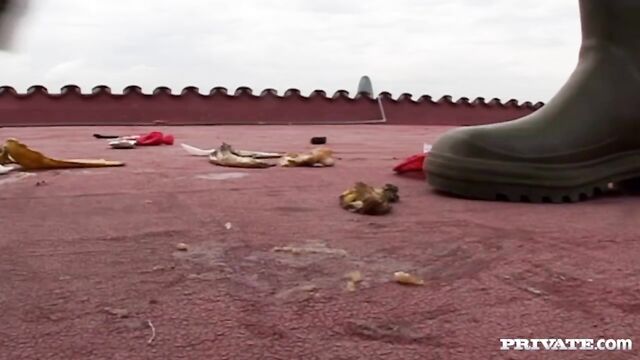 Description: Tiffany Hopkins is on the end of a leash and crawling along after her man. He signals for some helpers who bring over a large cage. After stripping her down to her lingerie she crawls into the cage. She sucks cock through the cage and then gets fucked in the pussy and ass before drinking their cum.
