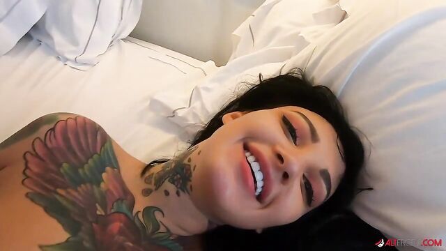 Cute-looking brunette teen Adel Asanty rammed in the bedroom