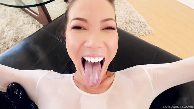 Oiled brunette Kalina Ryu is enjoying face fucking so freaking much