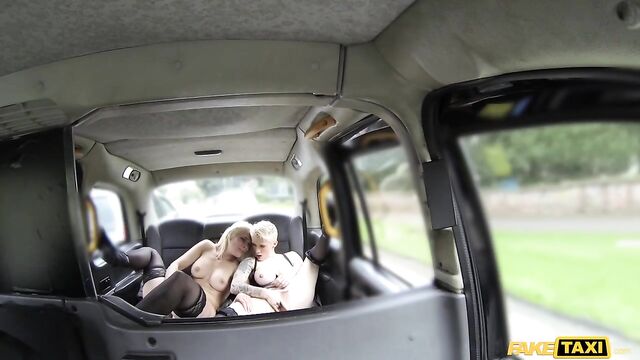 Description: Real nice of these two hot blonde nymphos from Amsterdam to put on a show for me in the back of my cab. Mila Milan and Debby Pleasure looked like two straight-laced beauties from the outside, in their long coats and black dresses, but they showed their true selves when I told them about the London tradition of offering free rides to women who flash their tits. Without batting an eye, Mila and Debby got their boobs out and started motor-boating each other. As their clothes came off, their wild sides came out and these put their tongues to work in the back seat. Fingers crossed they'll want to add a cock to the mix.