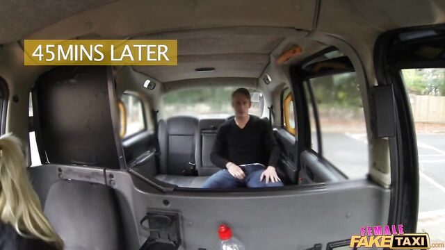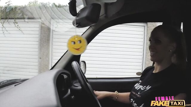 Gorgeous busty blonde fucks with a lucky passenger on the backseat