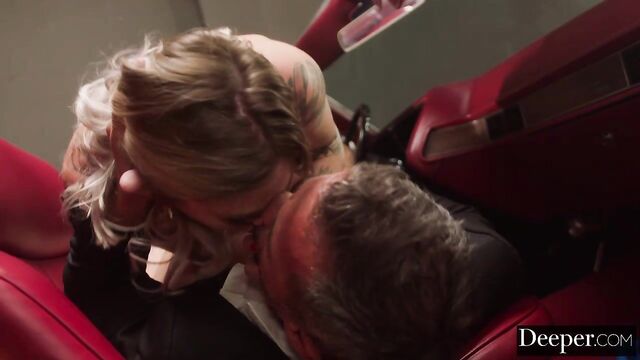 Description: A close call for a cheating wife gets her motor pumping for some roadhead with her affair partner.