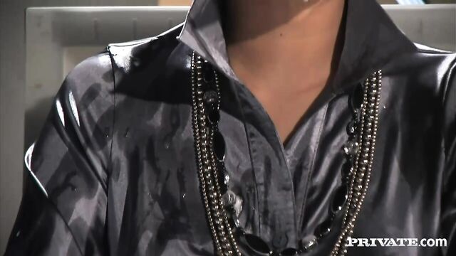 Description: While Sai-Tai sits behind the anchor desk, a guy walks up next to her and strokes his dick until he cums on her face. The lovely Asian woman delivers a few more lines only to have another guy show up and cum on her too. Her clothes are getting wet as several more facial cumshots are delivered.