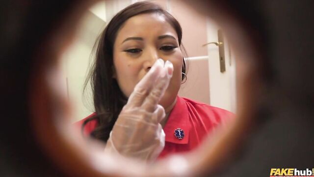 Description: Nobody's home, so Ron Johnny Fox takes advantage to prepare for an epic jerk session! He gets the porno, the lotion, the tissues, and ends up shooting rope. The problem? His boner won't go away! He tries shutting it in the fridge and dousing it with cold water, but no matter what happens, his mast stands tall. After four hours, Ron calls for help, and paramedic Cristina Miller shows up. Putting on gloves, she tries stroking his cock, then stimulates his prostate too. The boner won't go away, so Cristina tells Ron to lube up her big tits, and gets to sucking his cock. Cristina sits on the teen's face and he licks her pussy until she cums, then she rides his cock reverse cowgirl until he creampies her! Still not one to soften, Ron keeps fucking Cristina doggystyle, penetrating deep until he shoots his final load on her face and tits!